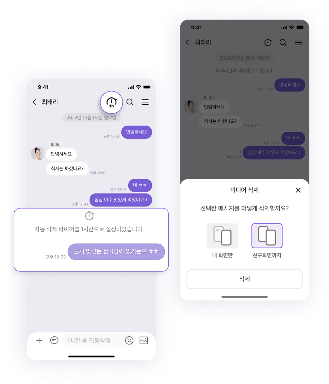 자동 삭제 타이머와 상대방 포함 전체 삭제 기능으로