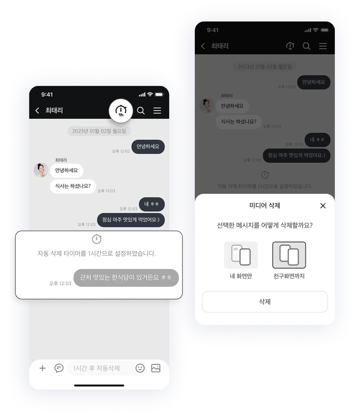 상대방 기록까지 깔끔하게 지워지는 고급 보안 채팅 기능.